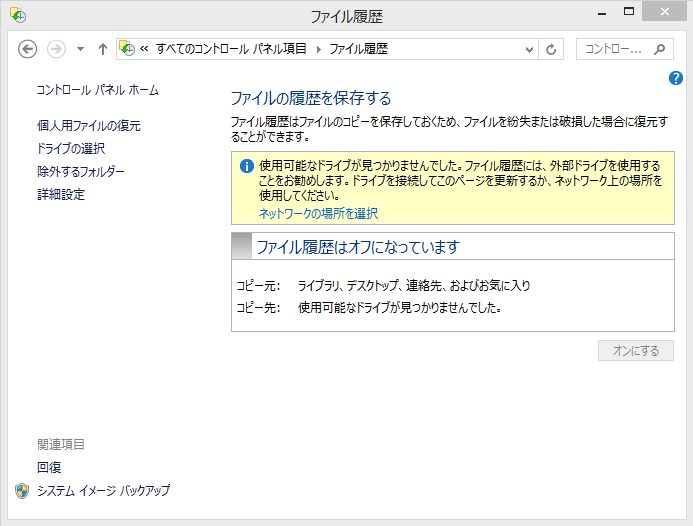 『ファイル履歴』機能をオンにする方法。